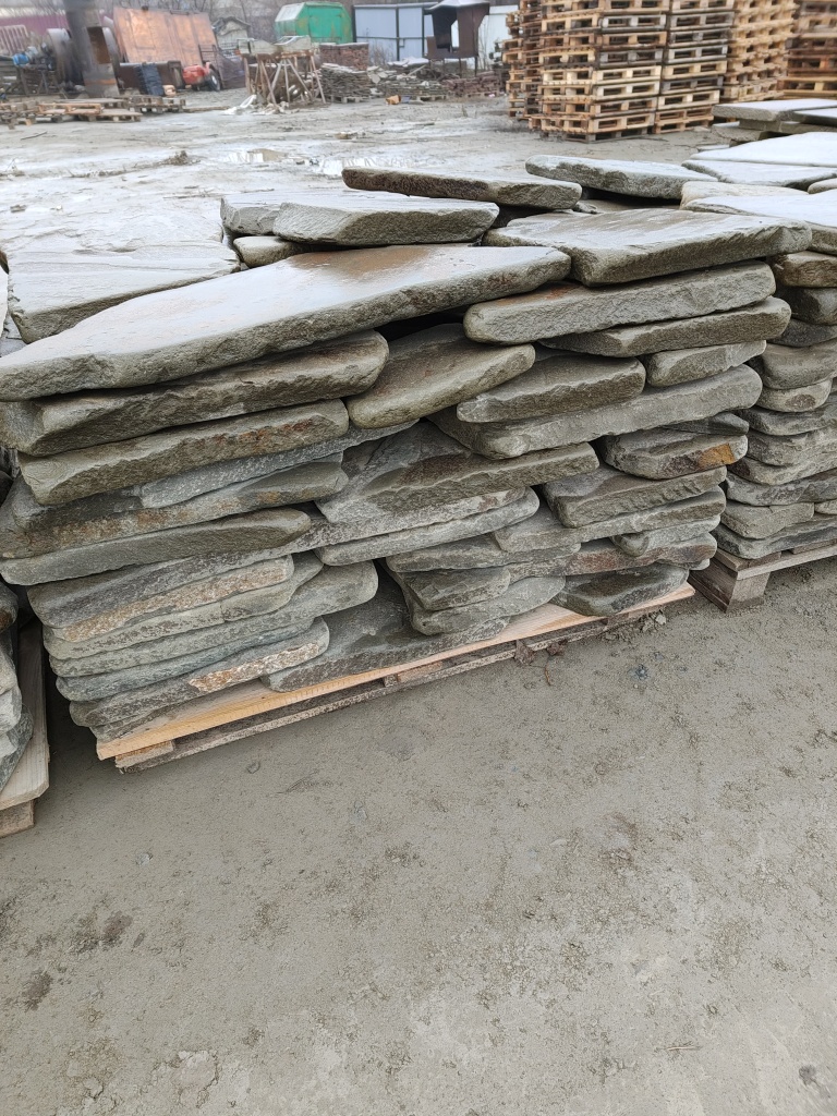Вне всяких сомнений, если Вам нужно небольшое количество камня – 1-2-3 поддона, и плитняк Вам нужен в ближайшее время, т.к. строительная бригада уже готова приступить к работе с камнем – лучшим выходом будет покупка плитняка на ближайшем строительном рынке.